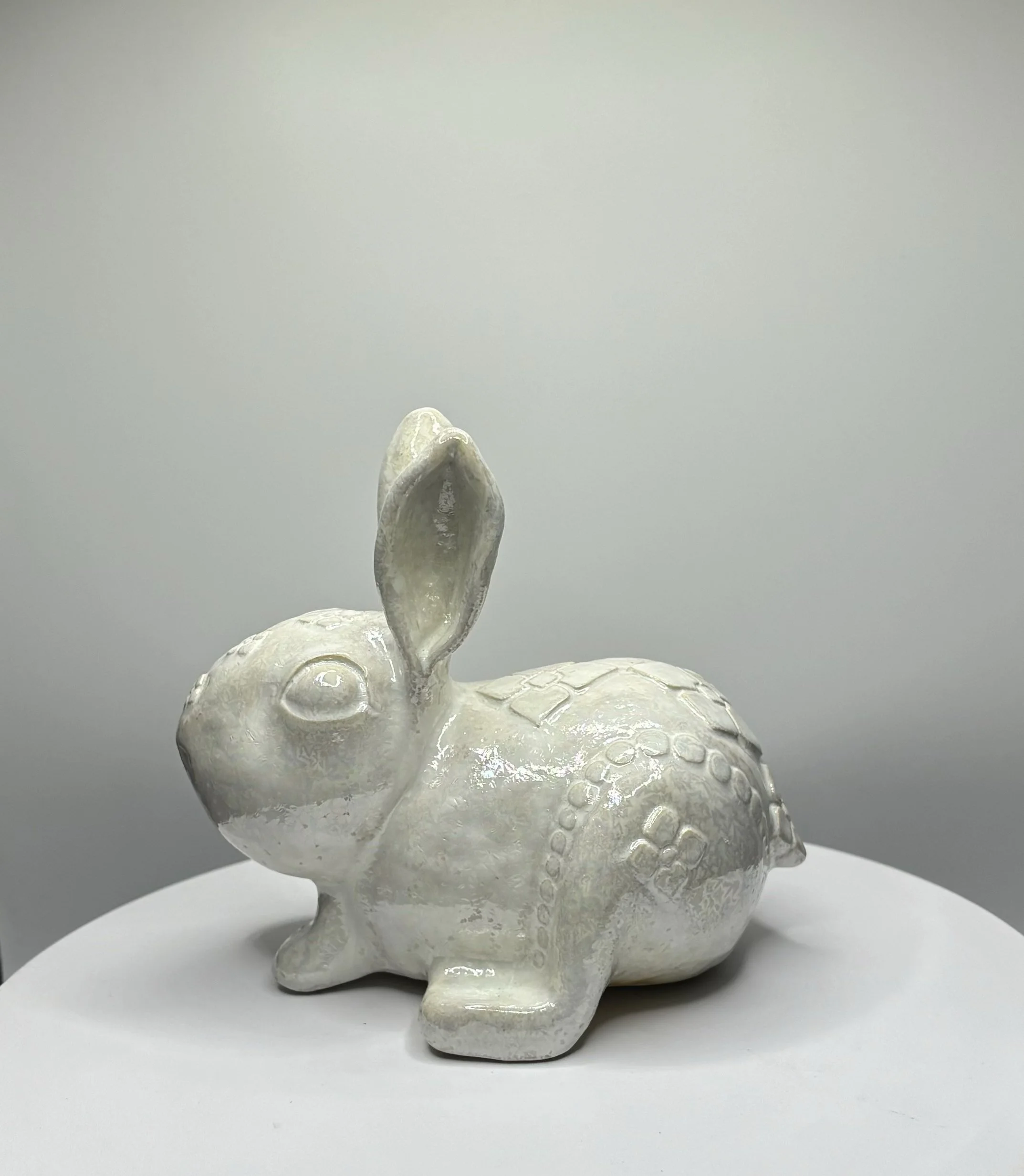 Formed with the pinch pot technique, then carved with traditional Khmer chan flower and fish egg motifs. Coated with an opalescent glaze.